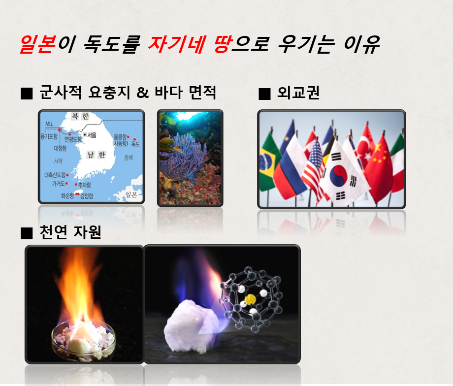 독도를 소유하면 주변의 바다, 즉 바다의 천연자원, 군사적 요충지, 바다 면적, 외교권까지 모두 가질 수 있기 때문이죠.