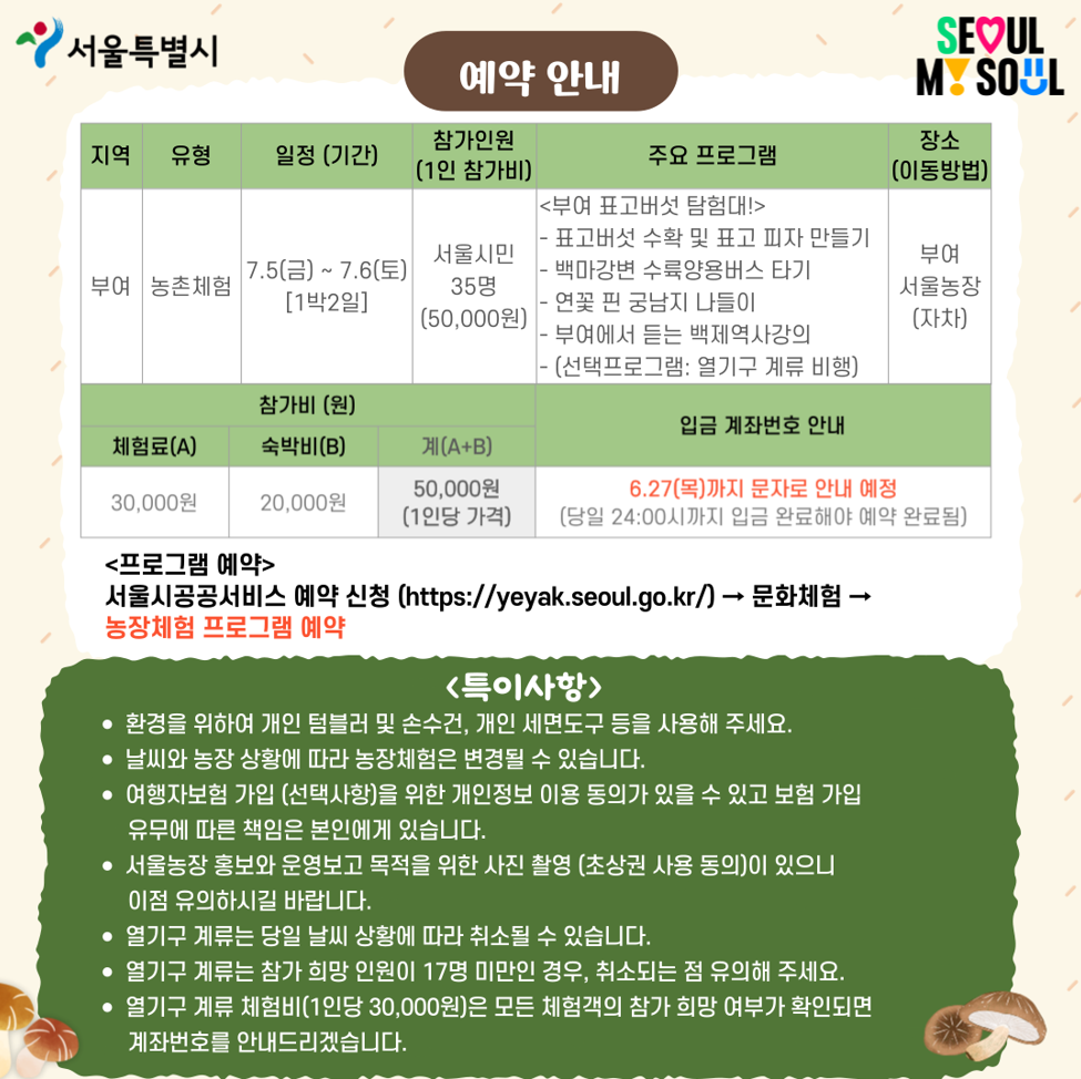 서울농장을 매주 서울시민들을 위한 1박 2일 여행 프로젝트!