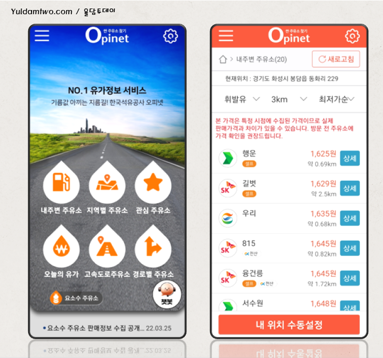 내 주변 주유소, 지역별 주유소를 확인 가능하고, 출퇴근길에 주유를 많이 하시는데 가는 길에 주유소를 등록해서