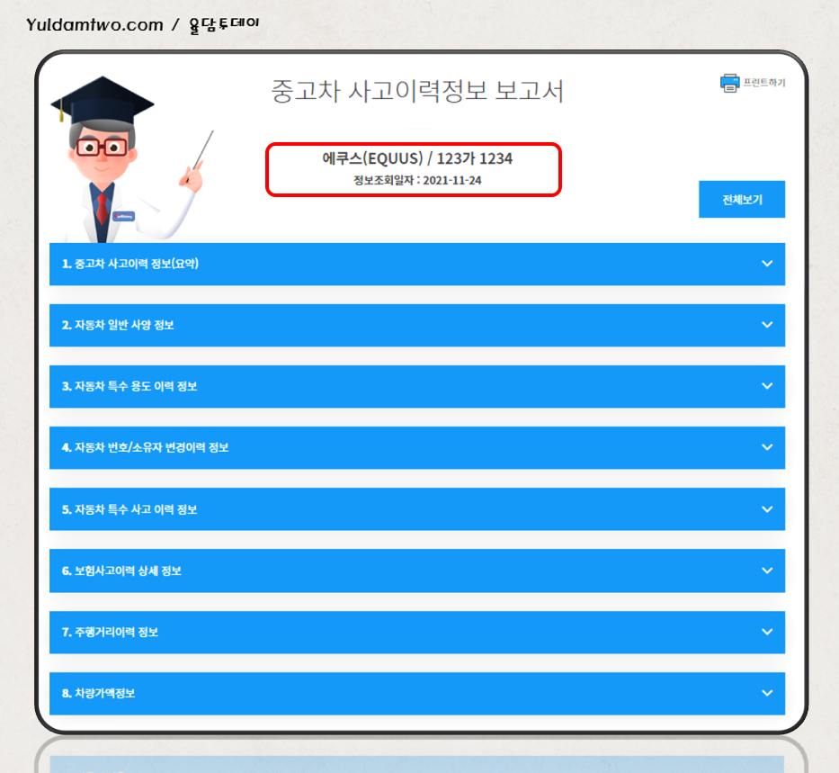 지금부터 자동차 사고이력에 대해 소개하겠습니다.
