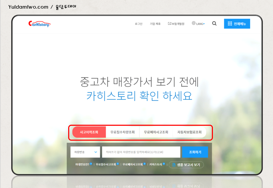 자동차 사고 이력 조회란 중고차를 구매하는 데 자동차의 보험과 상태를 한눈에 알아보고 차량번호 변경, 소유자 변경,