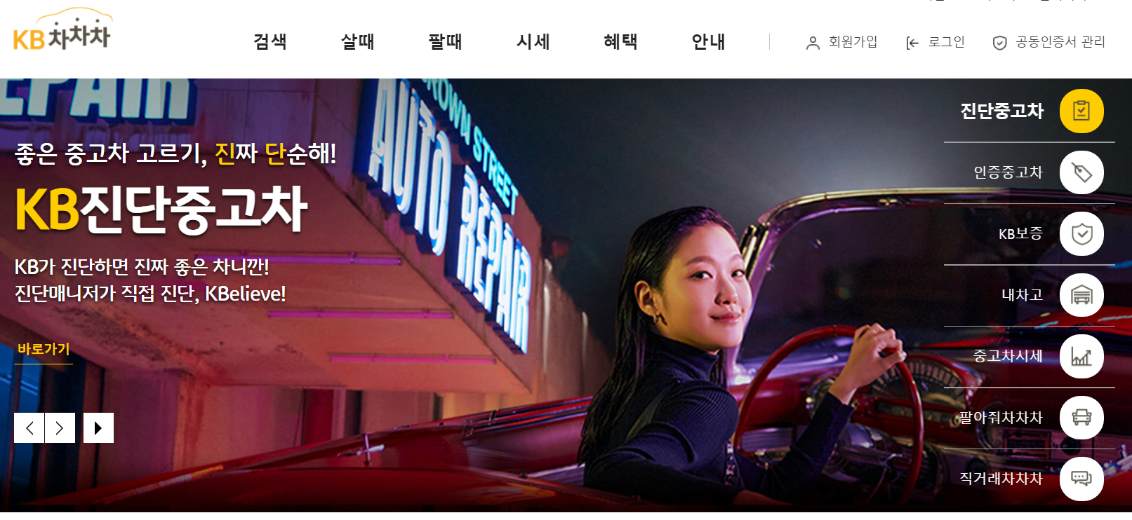 KB 캐피털 금융회사에서 운영하는 중고차 매매 사이트입니다.
