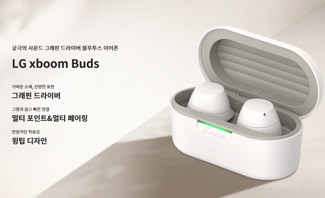 LG 엑스붐 버즈는 무선 이어폰으로, 블루투스 기능을 통해